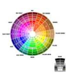 A circular chart with wedge-shaped segments of different specific colors. Used in color decorating.